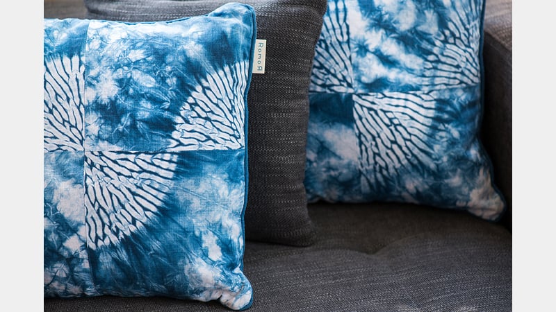 Rob's approach to textiles design is to innovate using traditional methods, breaking the tradition in a sympathetic way, either by cutting and re-piecing work or by merging techniques together to create modern versions of them. Rob follows the principles of Wabi Sabi, looking for the beauty in the random effects that are created by certain shibori techniques and Mottainai, the Japanese equivalent of "waste not, want not".