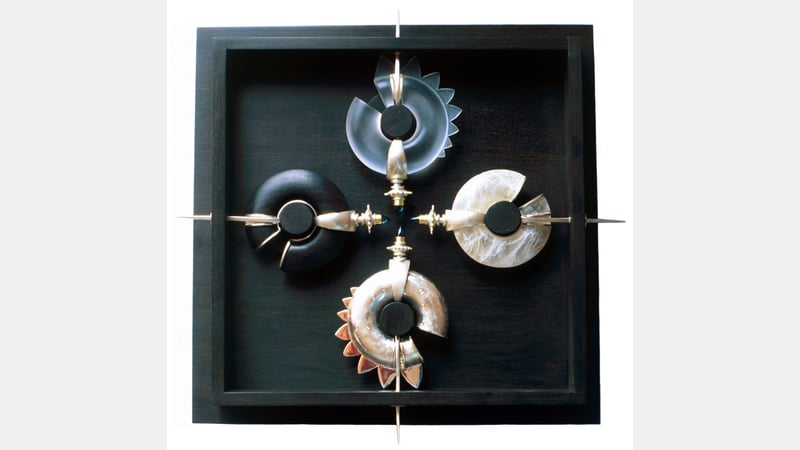 Sarah's own creative practice combines a wide range of materials and processes. While recent work has focused on using dyed and heat formed polypropylene combined with silver, Sarah is also developing ideas in a new direction looking at small contained spaces.