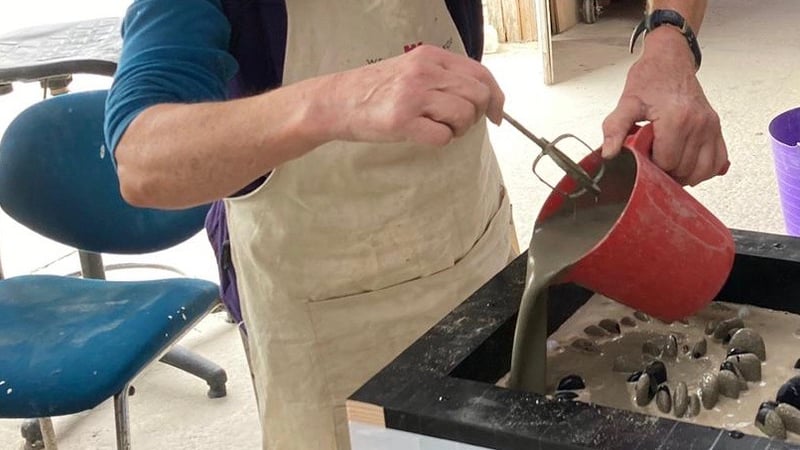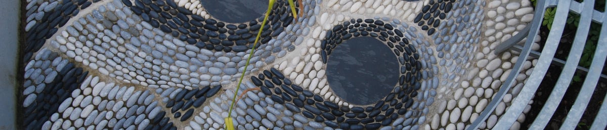 Sue Rew was trained by world renowned pebble mosaic artist Maggy Howarth. She has run her own studio workshops for the past eight years. Her mosaics can be seen in local Cotswold gardens participating in the National Gardens Scheme. She is a member of British Association of Modern Mosaicists.