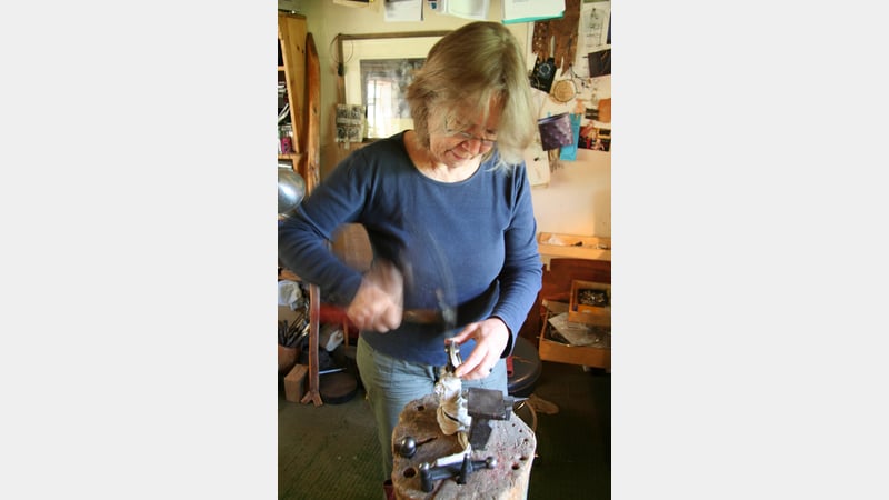 Syann trained in ceramic design, Johannesburg, designed ceramic cladding and architectural murals. She learned jewellery-making through the studio system in Amsterdam and established her practice in Britain in 1980. Syann taught in Arts centres at Central St Martins, and in-house degree students.