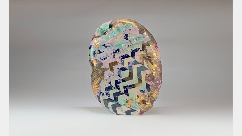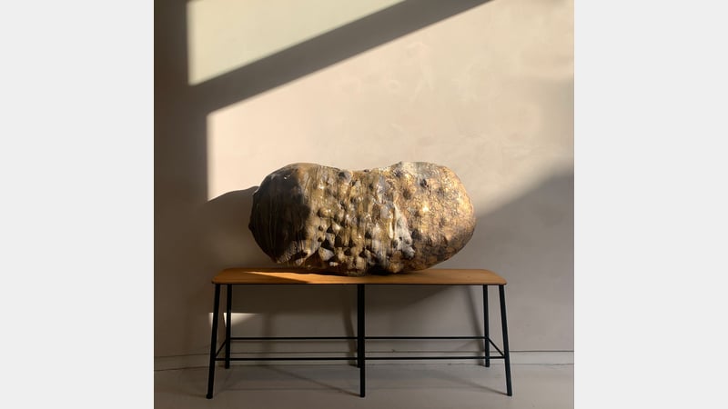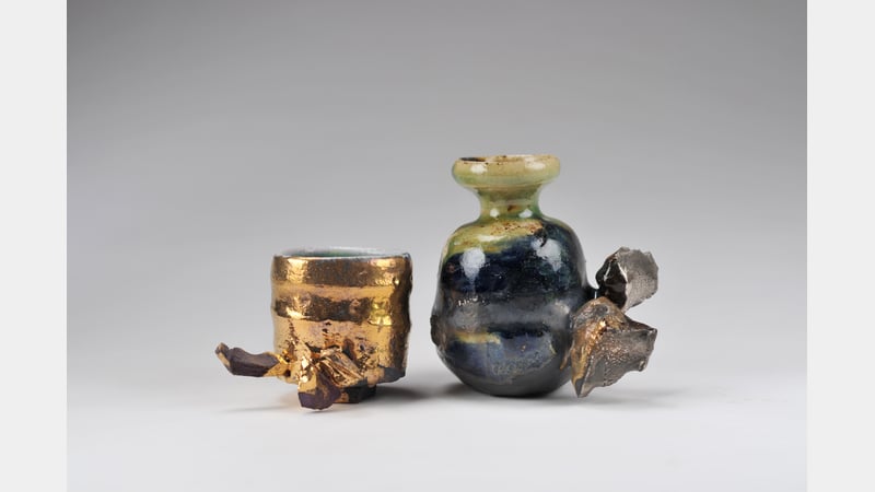 I aim to combine the opulent and the organic. The Peak District landscape is motion, flux, texture and luster, it provides both inspiration and material; rushing waterfalls and the dark reflections of peat pools. Rock formations inspire layered, undulating, coarse forms, whilst grit and granite are often folded into the surface itself. My pieces are both about and of the landscape: a conversation with their environment.