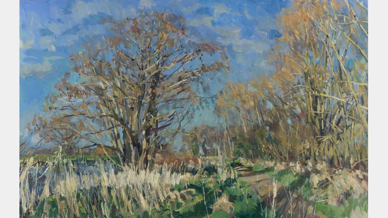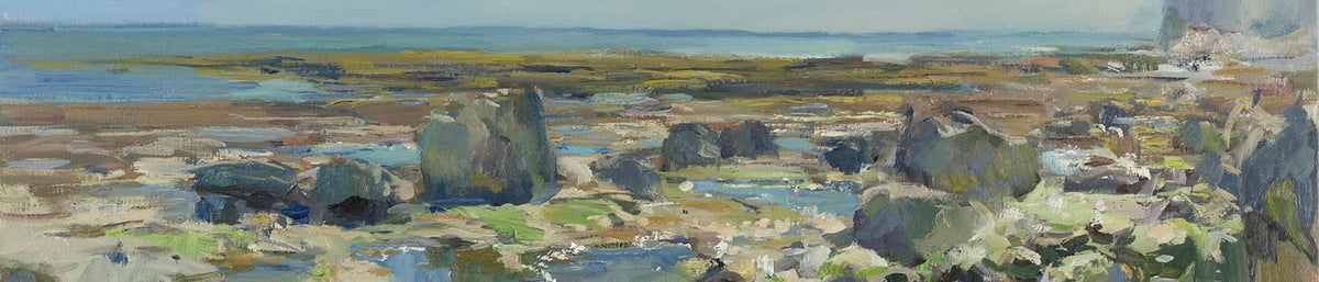 I am committed to the practice of plein air painting. The sense of the subject being about to slip away as the light changes lends the working process a sense of urgency. I am often drawn to subjects which have a sense of slippage such as the coast where wet mud or rock pools gives way to water which reflects the sky, or woods where light falling on a visual tangle creates tension between the form and weight of the subject and the play of light which both reveals and disguises it.